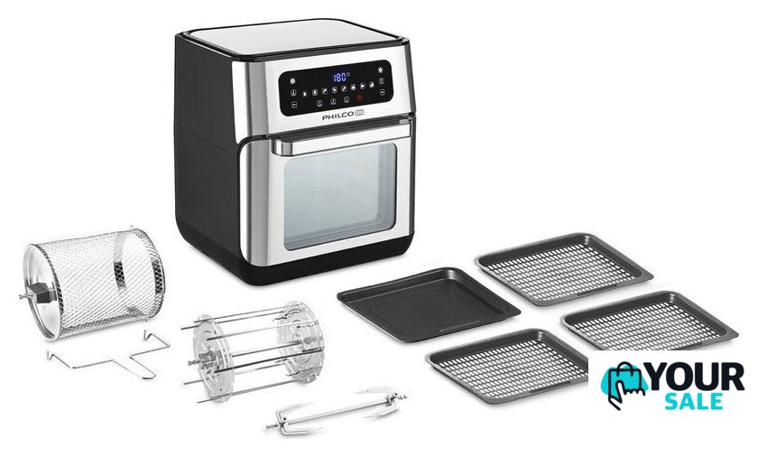 | Комплект поставки | Вращающийся вертелБарабан для жарки3 противня на решетке1 полная форма для запеканияНабор иголок для шпажекПредохранительная рукоятка |