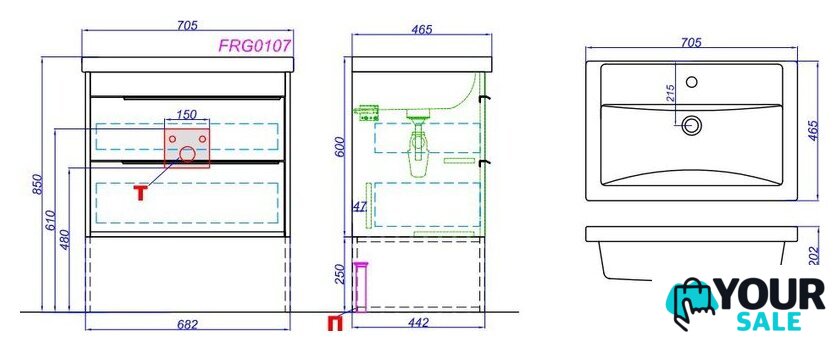 | Под умывальник шириной | 60 см |