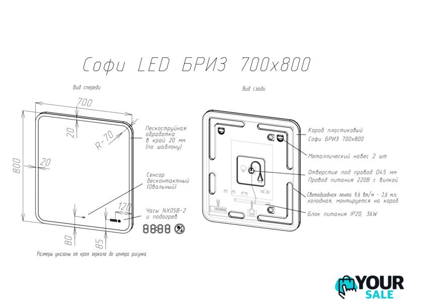 | Высота зеркала | 80 см |