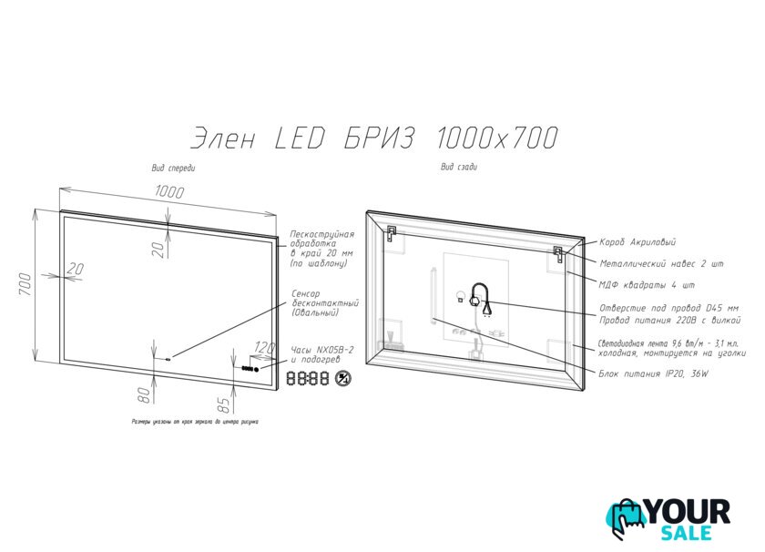 | Высота зеркала | 70 см |