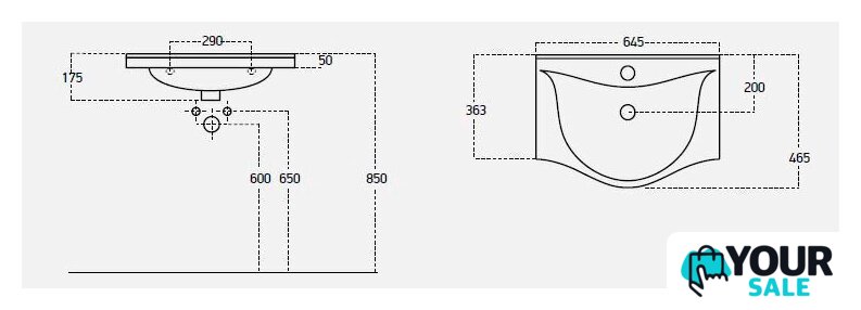 | Под умывальник шириной | 65 см |
