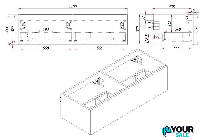 | Под умывальник шириной | 120 см |