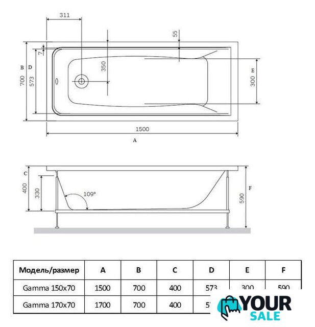 | Дополнительные комплектующие | ванна, панель фронтальная, ножки |