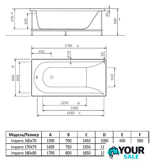 180x80 см, объём: 225 л