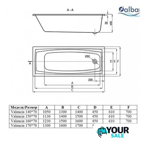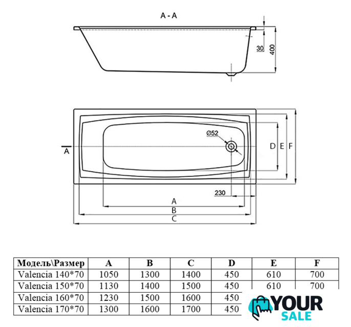 150x70 см, объём: 190 л
