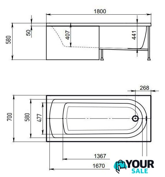 150x70 см, объём: 197 л