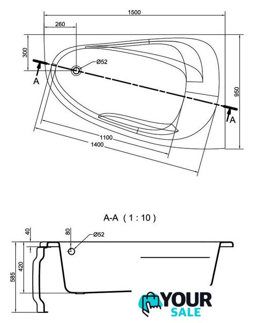 150x95 см, объём: 200 л