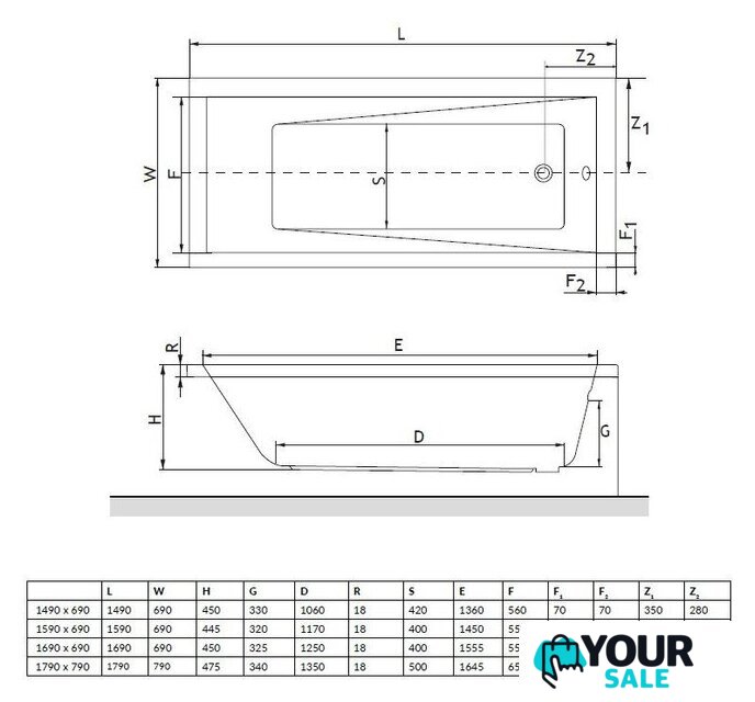 | Глубина ванны | 32.5 см (до перелива) |