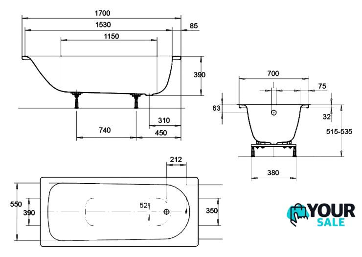 | Глубина ванны | 39 см |