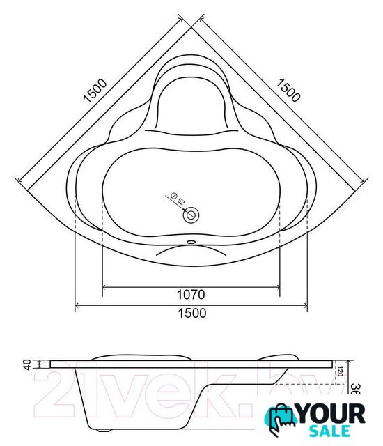 | Глубина ванны | 36 см |