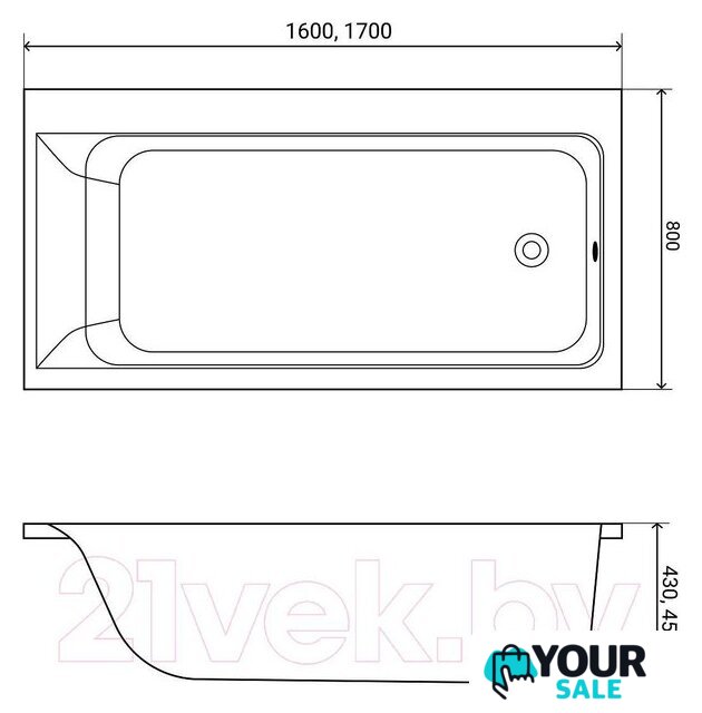 170x80 см, объём: 220 л