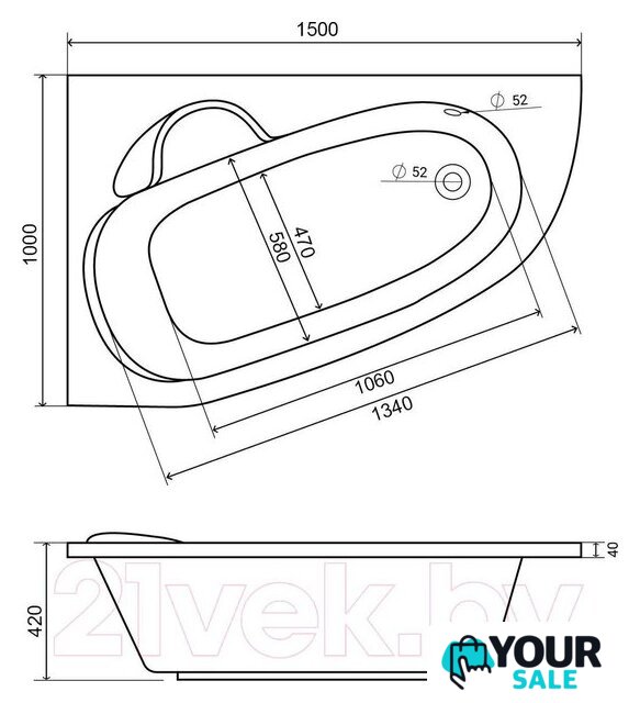 | Глубина ванны | 42 см |