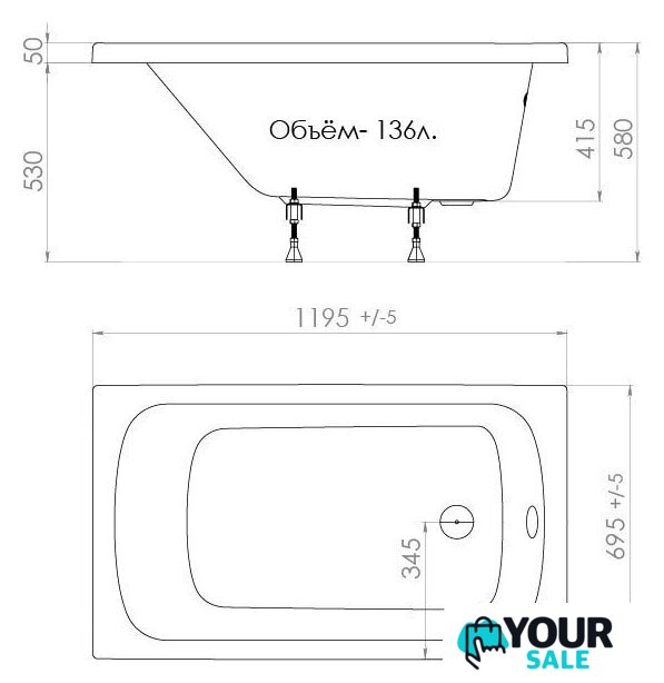 145x70 см, объём: 180 л