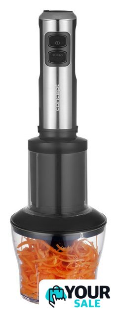 | Комплектация | Измельчитель (600мл)Спиралайзер с 3 насадкамиПогружная насадка с 4 ножамиНасадка для пюреДвойной венчик (также подходит для теста)Емкость для венчика с крышкой |