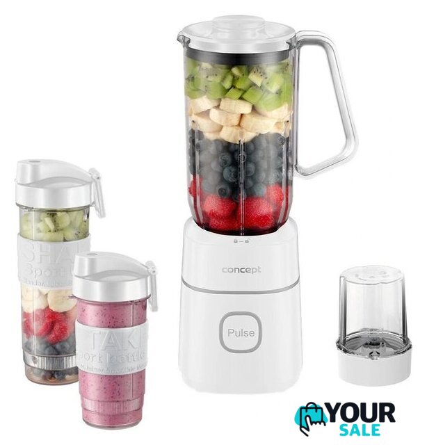 | Комплектация | основная база, литровая чаша из тритана с ручкой, дорожная бутылка 570 мл, дорожная бутылка 400 мл, мельничка для специй/кофе, два вида ножей, крышки для бутылок с питьевым клапаном и силиконовым грипом, инструкция |