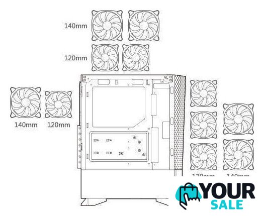 | Расположение СЖО | спереди: 280mm / 240mm / 140mm / 120mmсверху: 240mm / 120mmсзади: 120mm / 140mm |