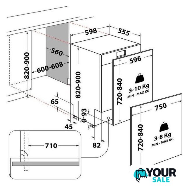 | Дополнительные опции | сокращение времени мойки, дополнительная сушка, усиление интенсивности мойки (гигиеническая мойка), половинная загрузка (экономия воды), программа самоочистки |