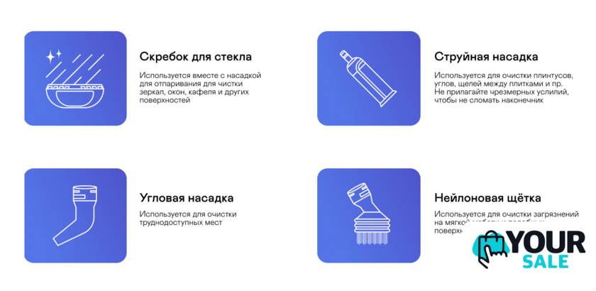 | Комплектация | КорпусРучной отпаривательУдлинительная трубкаСъемный паровой шланг Прямоугольная насадка для полаCкребок Скребок для стекла Металлическая щеткаСтруйная насадкаУгловая насадкаНейлоновая щеткаПлоская нейлоновая щетка Насадка для отпариванияНасадка для ковровых покрытийСалфетки для пола - 2 штРамкаФильтрРуководство пользователя |
