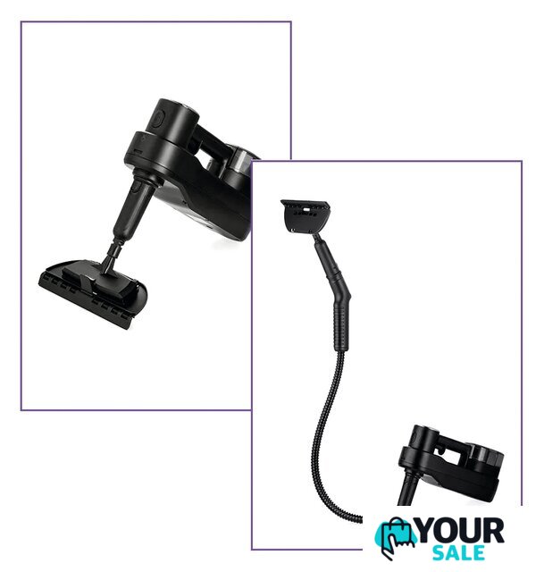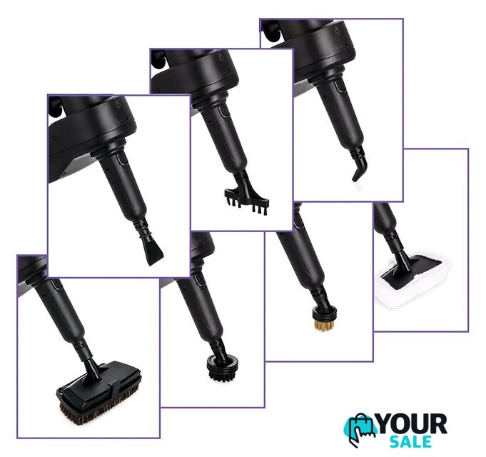 | Комплектация | Скребок, латунная и нейлоновые щётки очищают сложные загрязнения за счёт механического воздействия. Для очистки окон, зеркал и кафельной плитки используется скребок для стекла с резиновой вставкой. Струйная и угловая насадки помогут очистить щели и углы. |