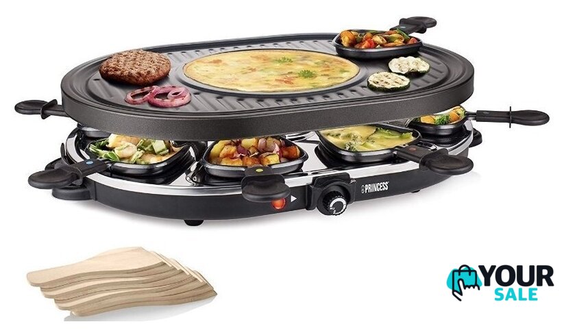 | Комплектация | - 1 съемная панель- 8 противней для раклета- 8 деревянных лопаток |