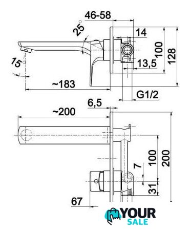 | Длина (вылет) излива | 183 мм |