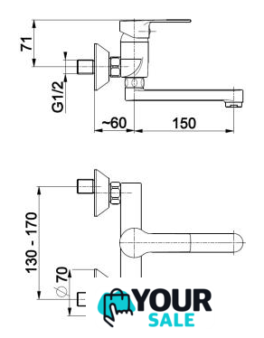 | Длина (вылет) излива | 150 мм |