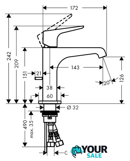 | Длина (вылет) излива | 143 мм |
