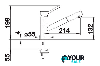 | Длина (вылет) излива | 214 мм |