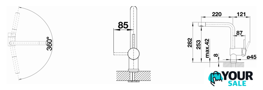 | Поворотный излив | 360 ° |