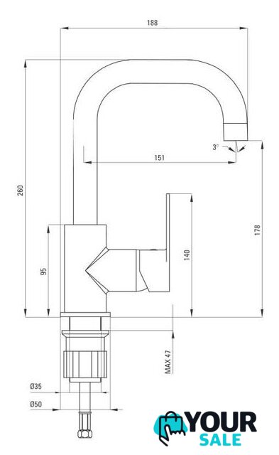 | Длина (вылет) излива | 151 мм |