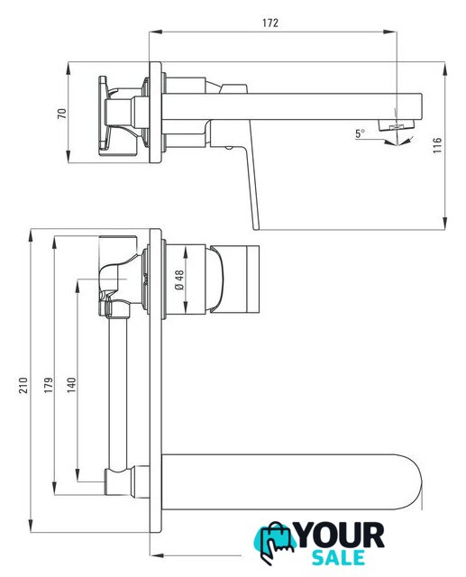 | Длина (вылет) излива | 172 мм |