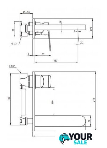 | Длина (вылет) излива | 153 мм |