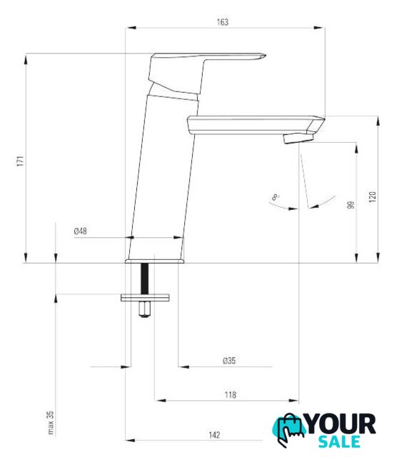 | Длина (вылет) излива | 172 мм |