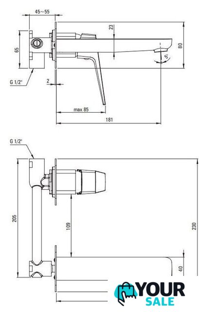 | Длина (вылет) излива | 181 — 181 мм |