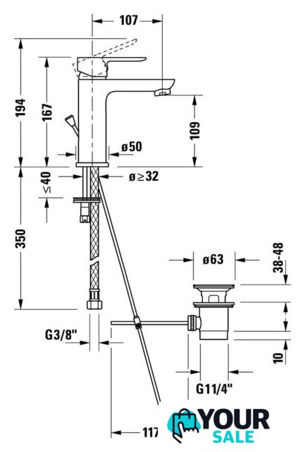 | Длина (вылет) излива | 107 мм |