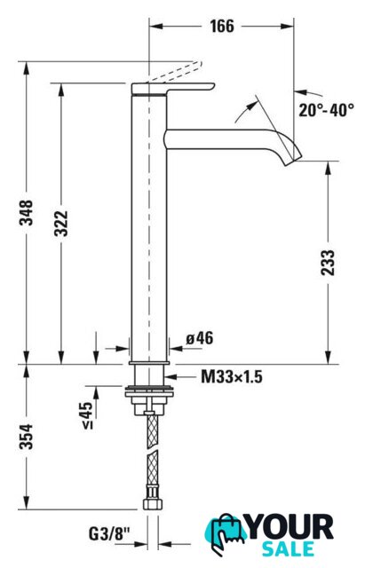 | Длина (вылет) излива | 166 мм |
