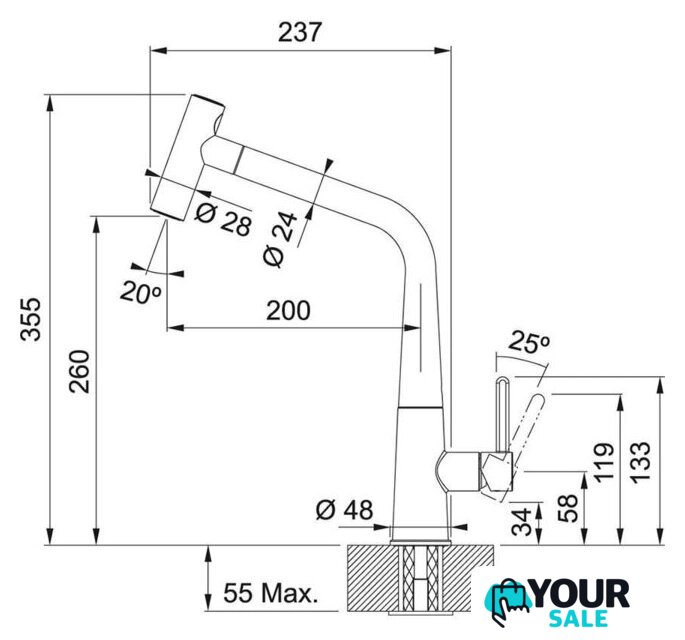 | Высота излива | 260 мм |