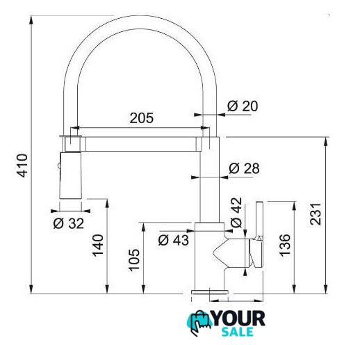 | Длина (вылет) излива | 205 мм |