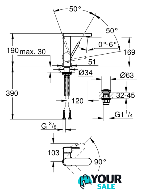 | Поворотный излив | 90 ° |