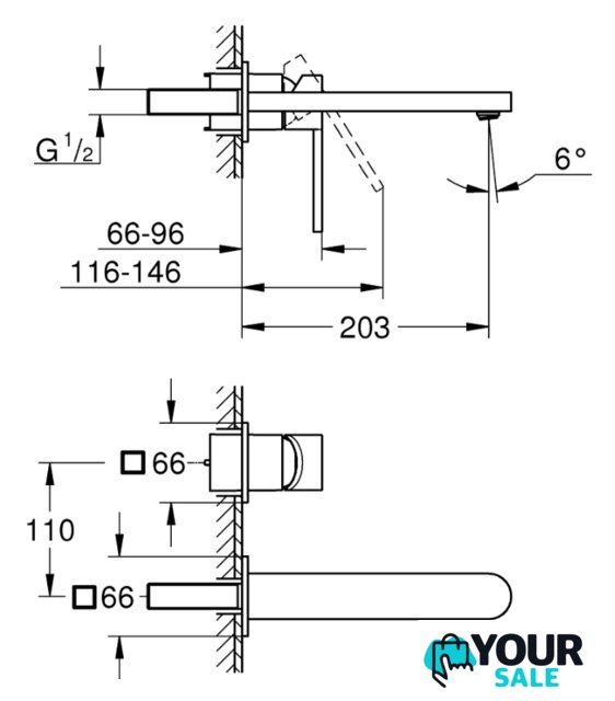 | Длина (вылет) излива | 203 мм |