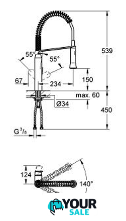 | Длина (вылет) излива | 234 мм |