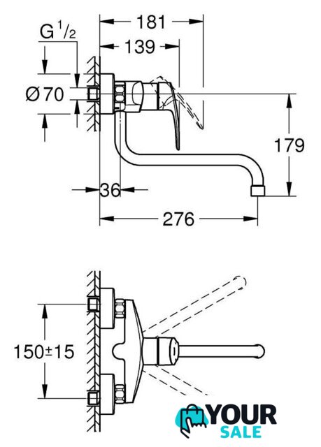 | Длина (вылет) излива | 276 мм |