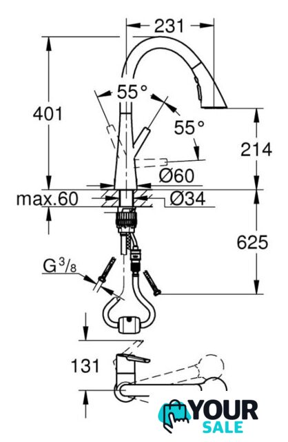 | Длина (вылет) излива | 231 мм |