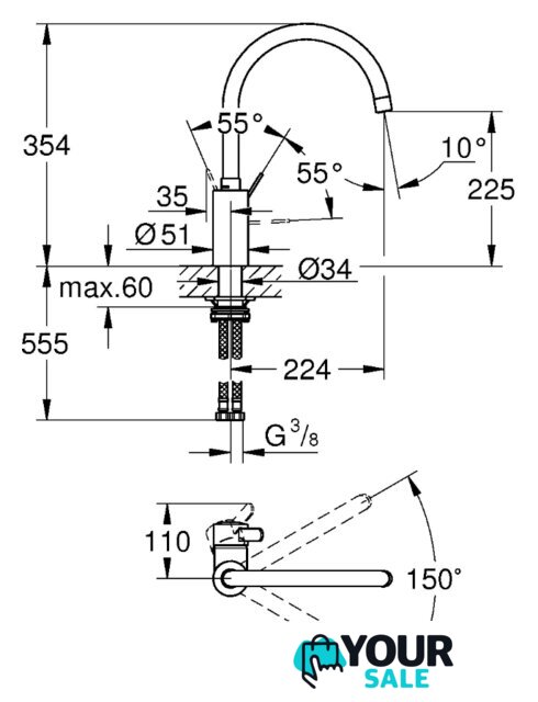 | Поворотный излив | 360 ° |