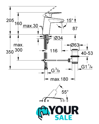 | Длина (вылет) излива | 116 мм |