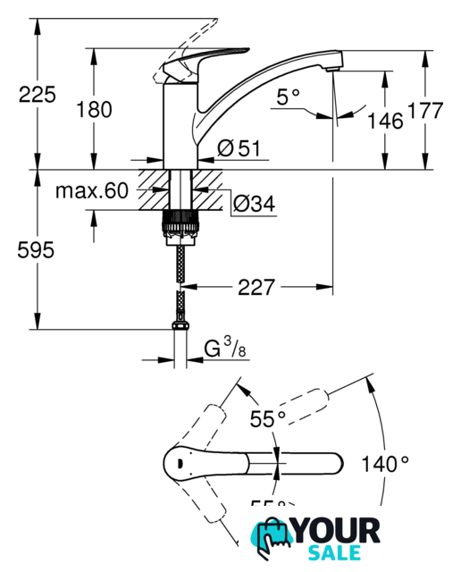 | Поворотный излив | 140 ° |