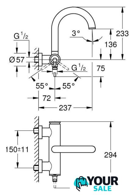 | Длина (вылет) излива | 237 мм |