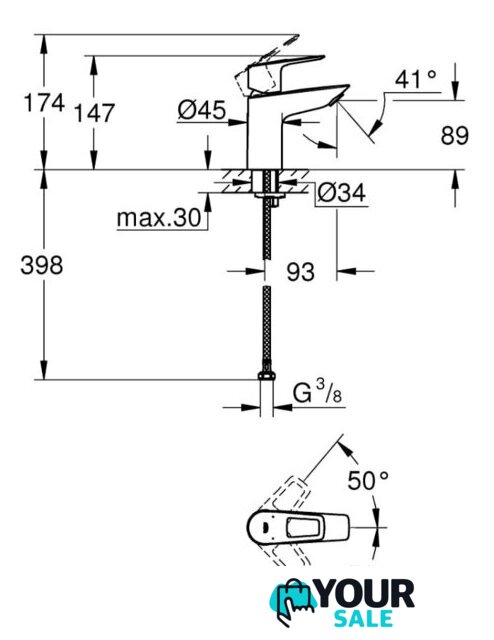 | Длина (вылет) излива | 93 мм |