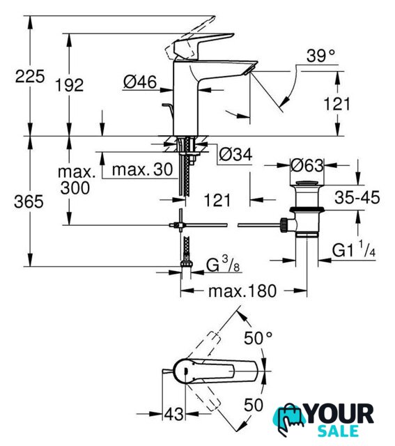 | Высота излива | 121 мм |