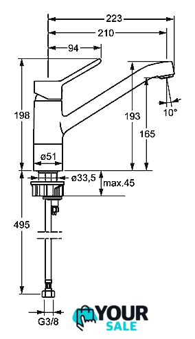 | Длина (вылет) излива | 210 мм |